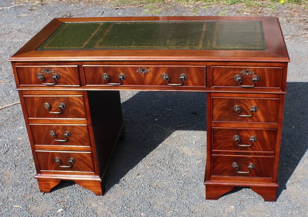 1960's Mahogany Pedestal Desk with Green Leather