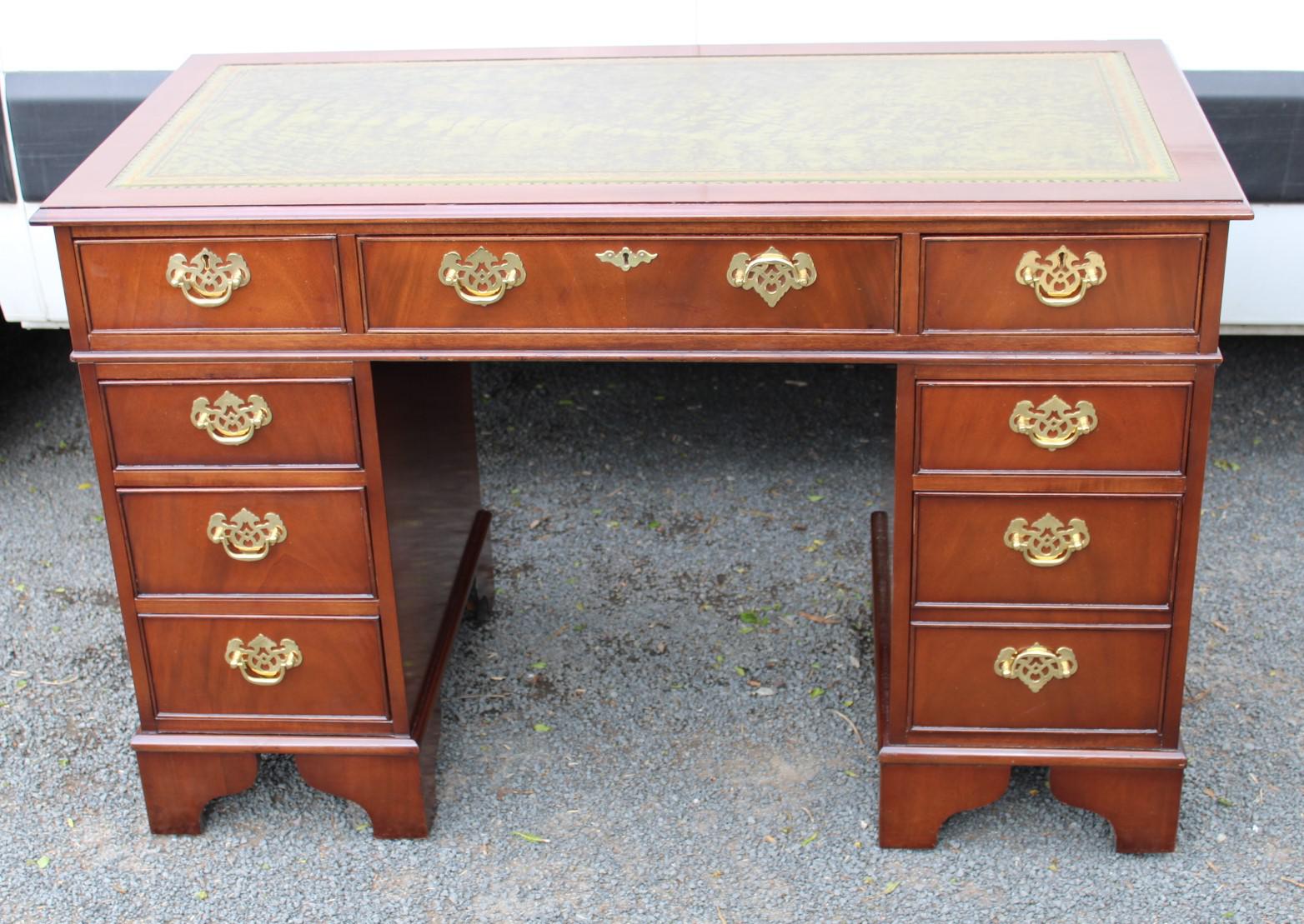 1960s Mahogany Pedestal Desk with Green Leather Top