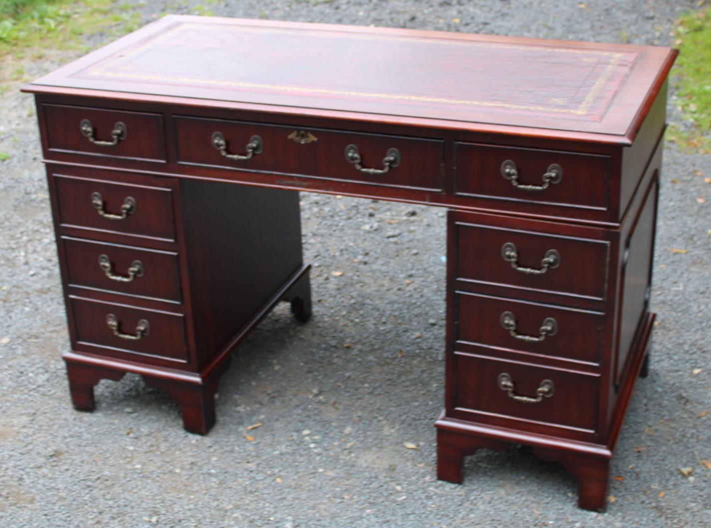 1960s Mahogany Pedestal Desk with Red Leather