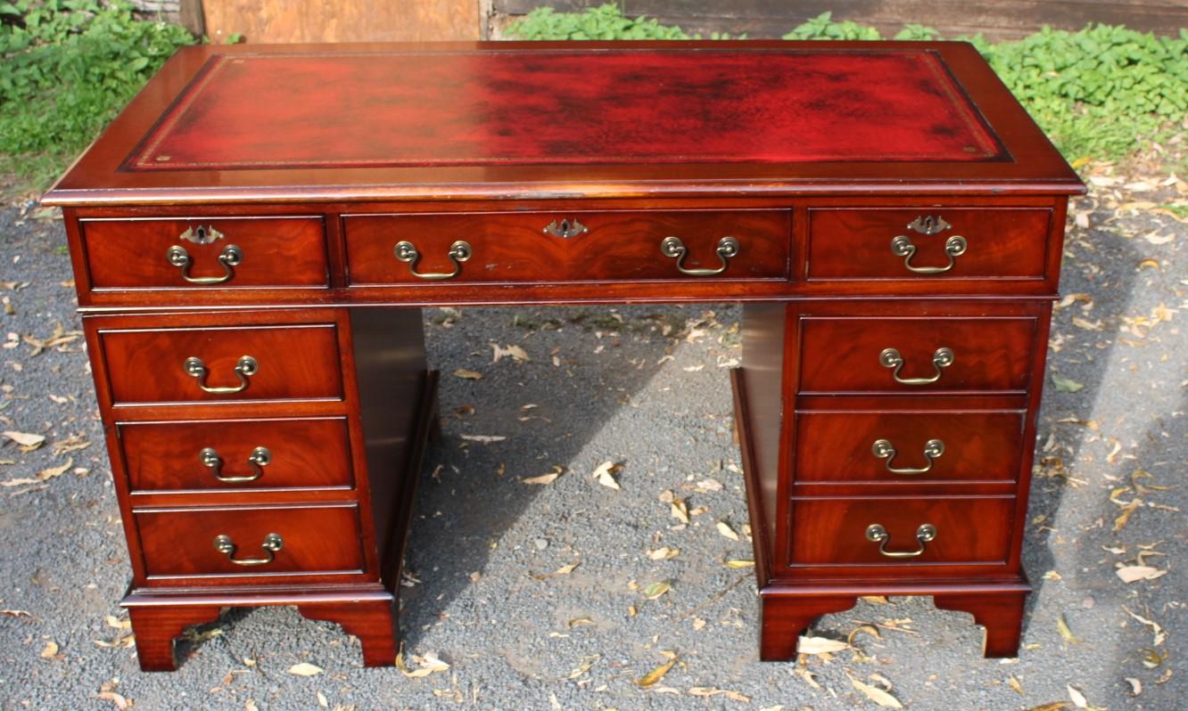 1960s Mahogany Pedestal Desk with Red Leather Inset