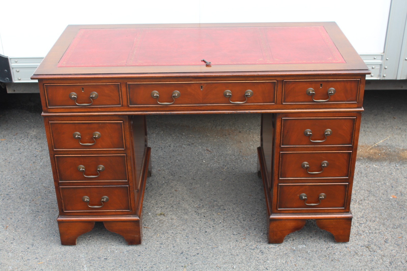 1960s Mahogany Pedestal Desk with Red Leather on Top