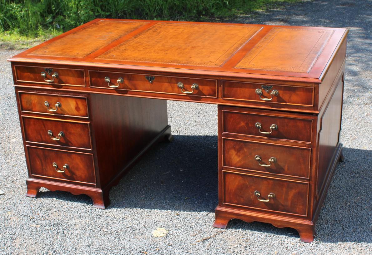 1960s Mahogany Pedestal Desk with Tan Leather on Top