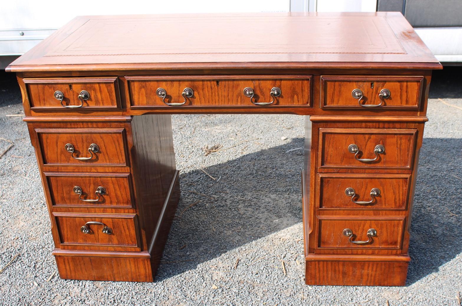 1960s Mahogany Pedestal Desk with Tan Leather Top