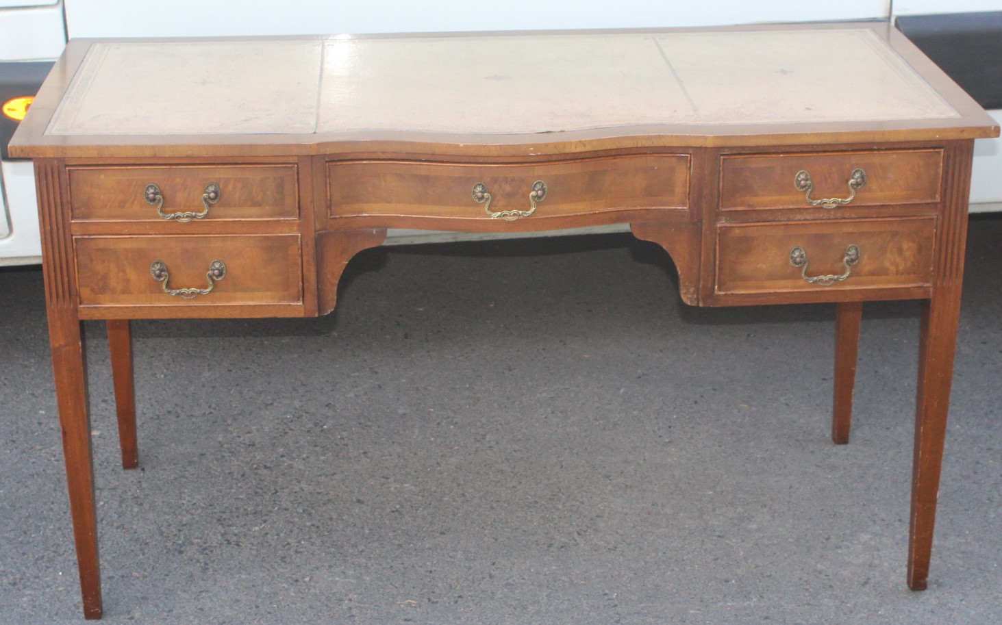 1960s Mahogany Serpentine Desk with Light Brown Leather & Slides Each End