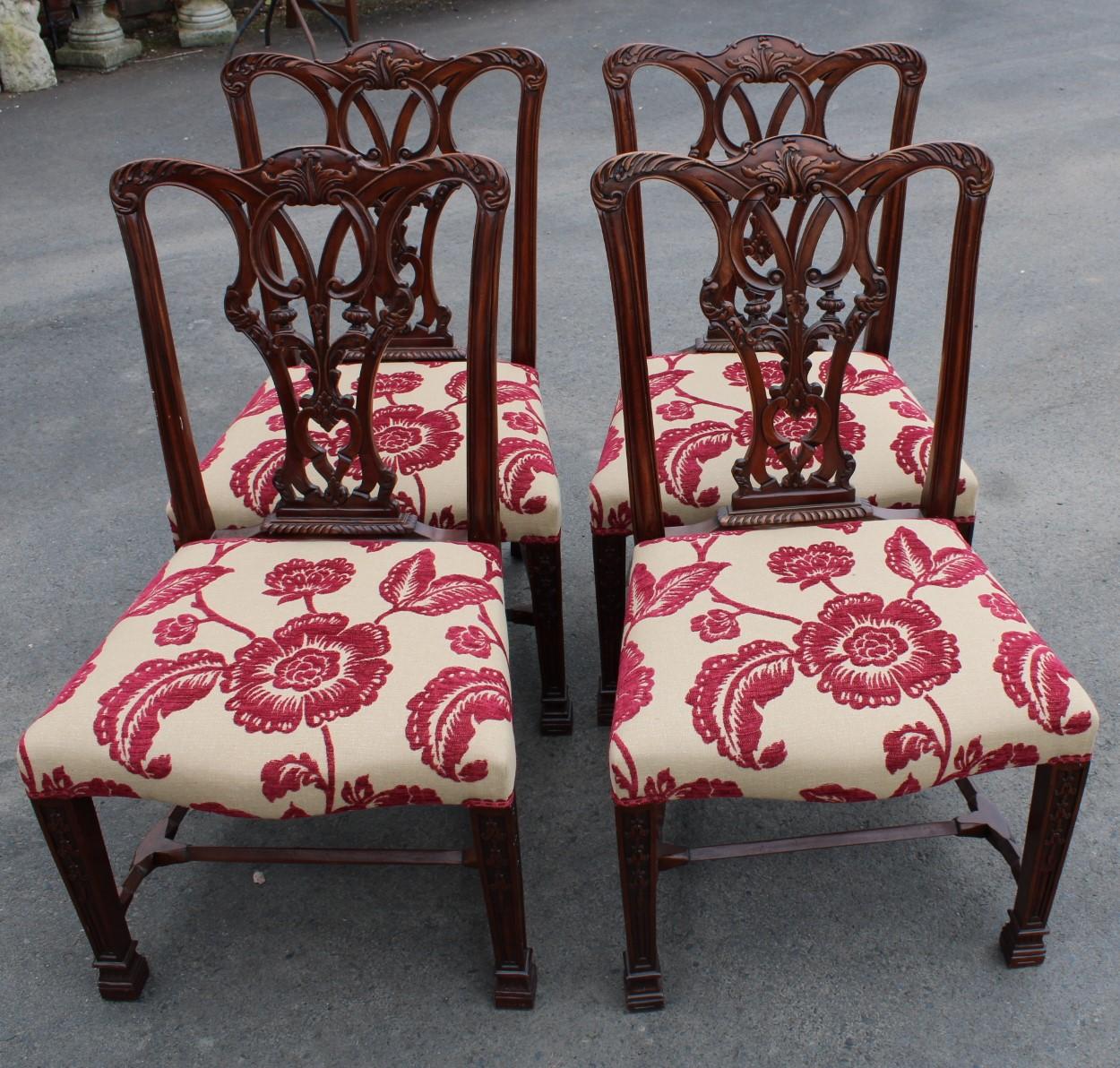 1960s Mahogany Set 4 Chippendale Style Dining Chairs in Floral Pattern