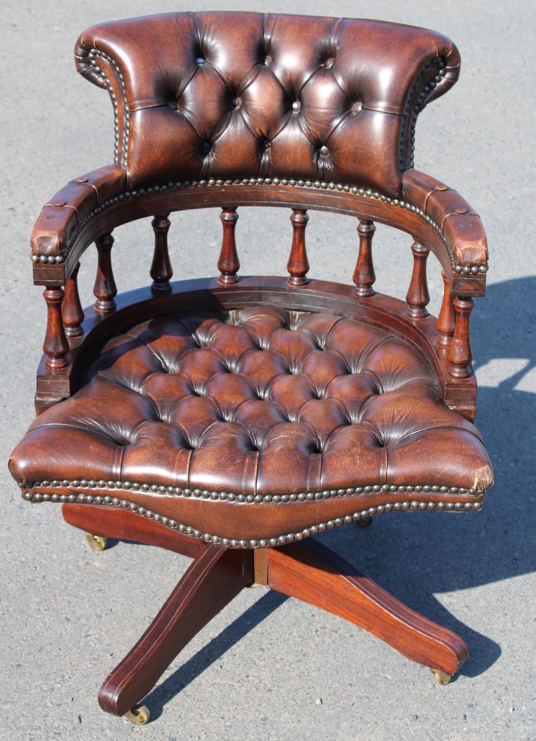 1960s Mahogany Swivel Office Chair in Brown Leather