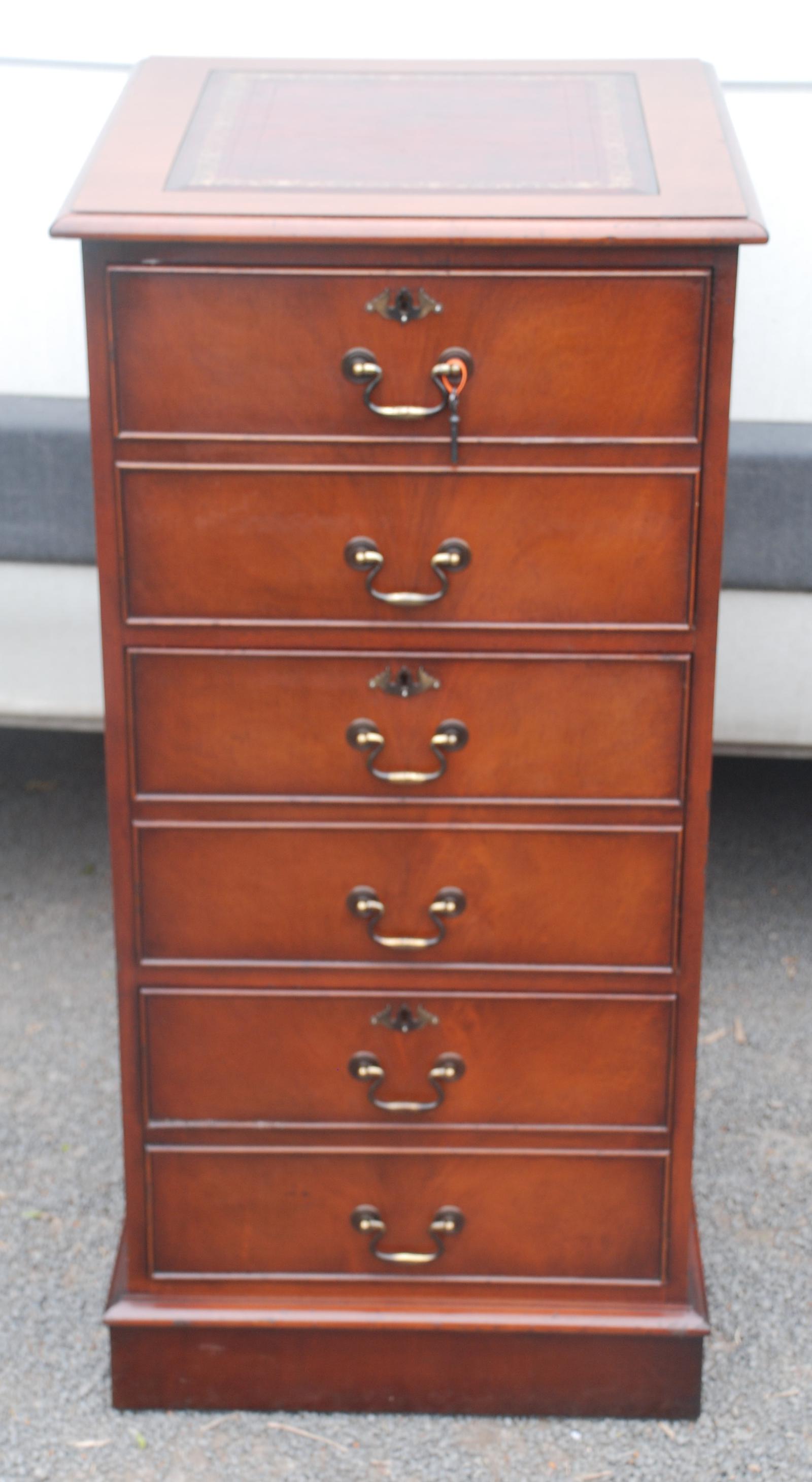 1960s Mahogany Tall Filing Cabinet with Red Leather Top