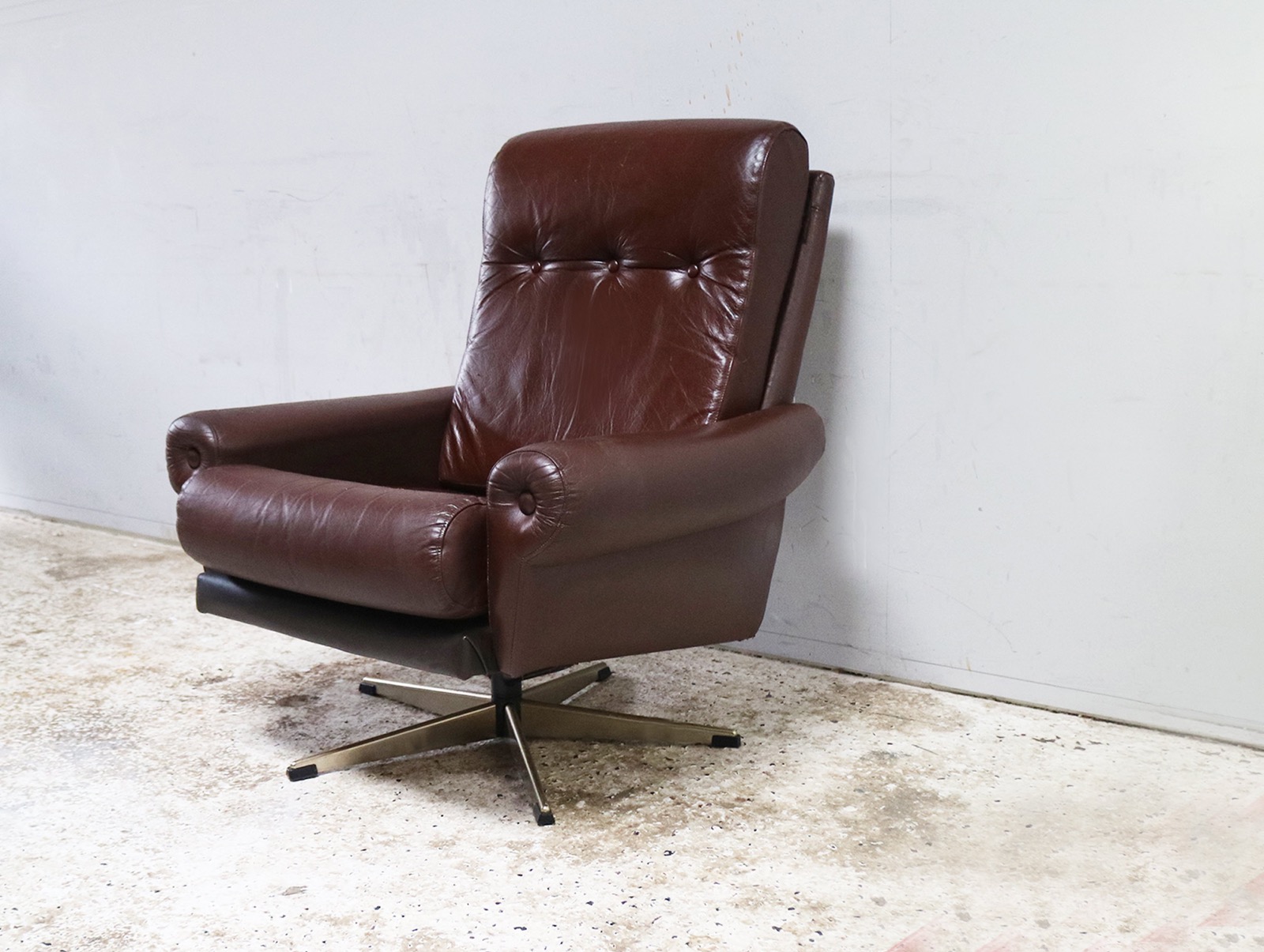1960s Mid Century Danish Leather Lounge Chair