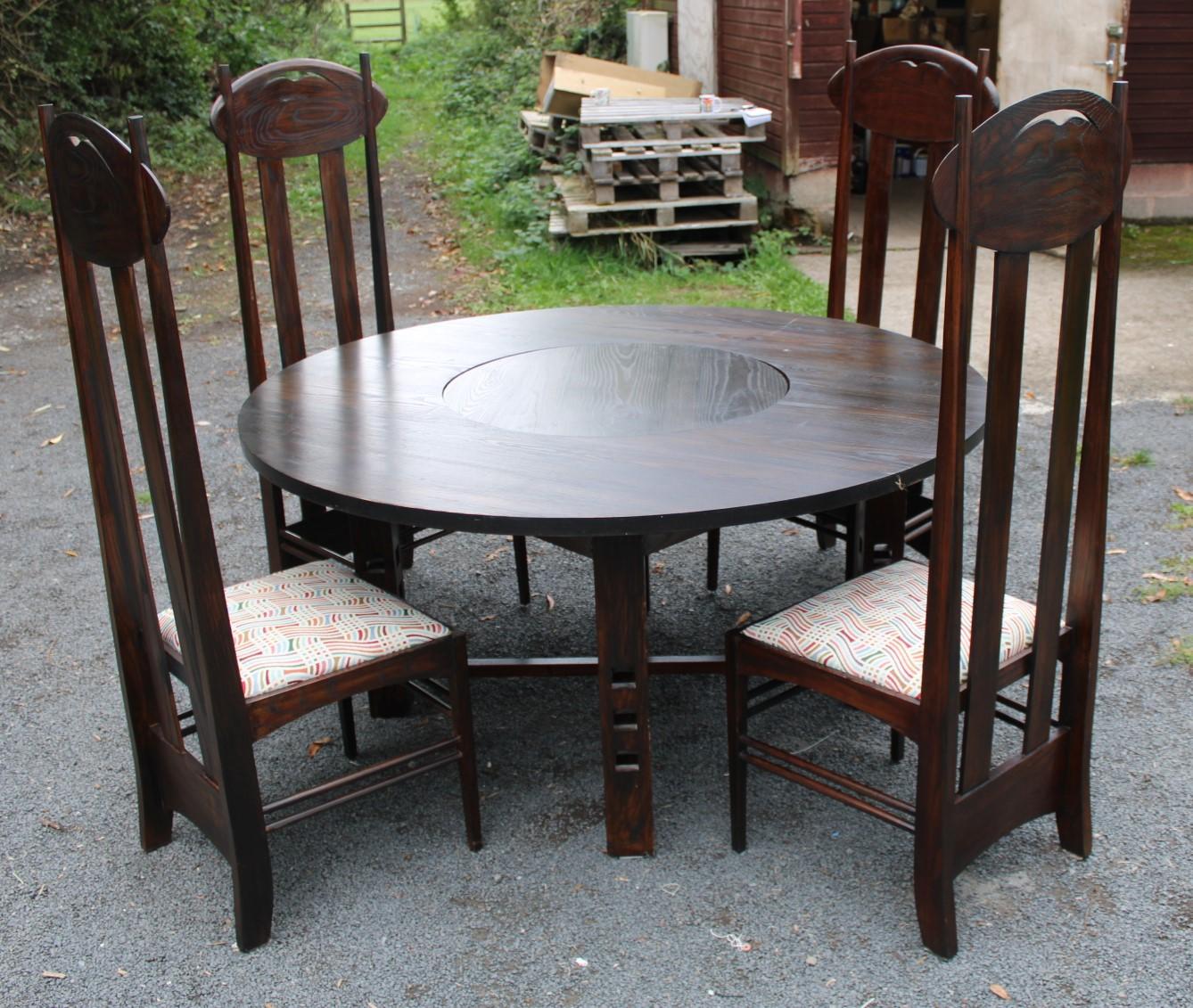 1960's Oak Dining Table + Set 4 Oak High Back Chairs- Copy of Rennie Mackintosh