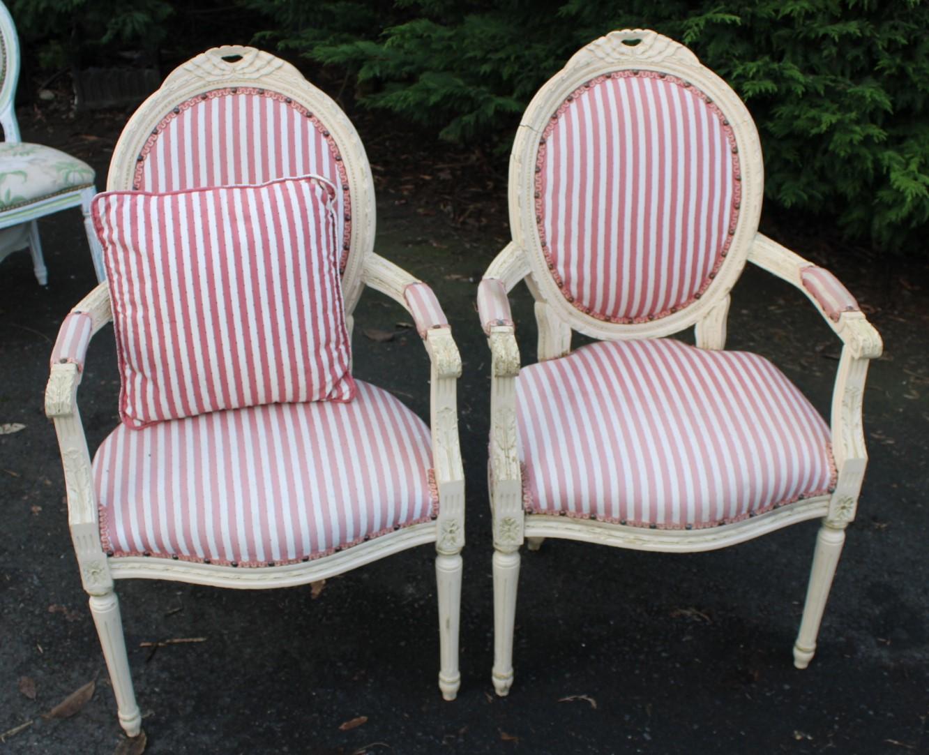 1960's Pair Louis XV Style Armchairs White with Red Stripe