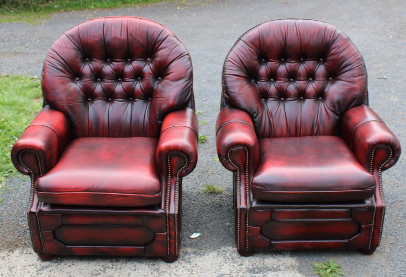 1960s Pair of Chesterfield Red Leather Highback Buttoned Armchairs