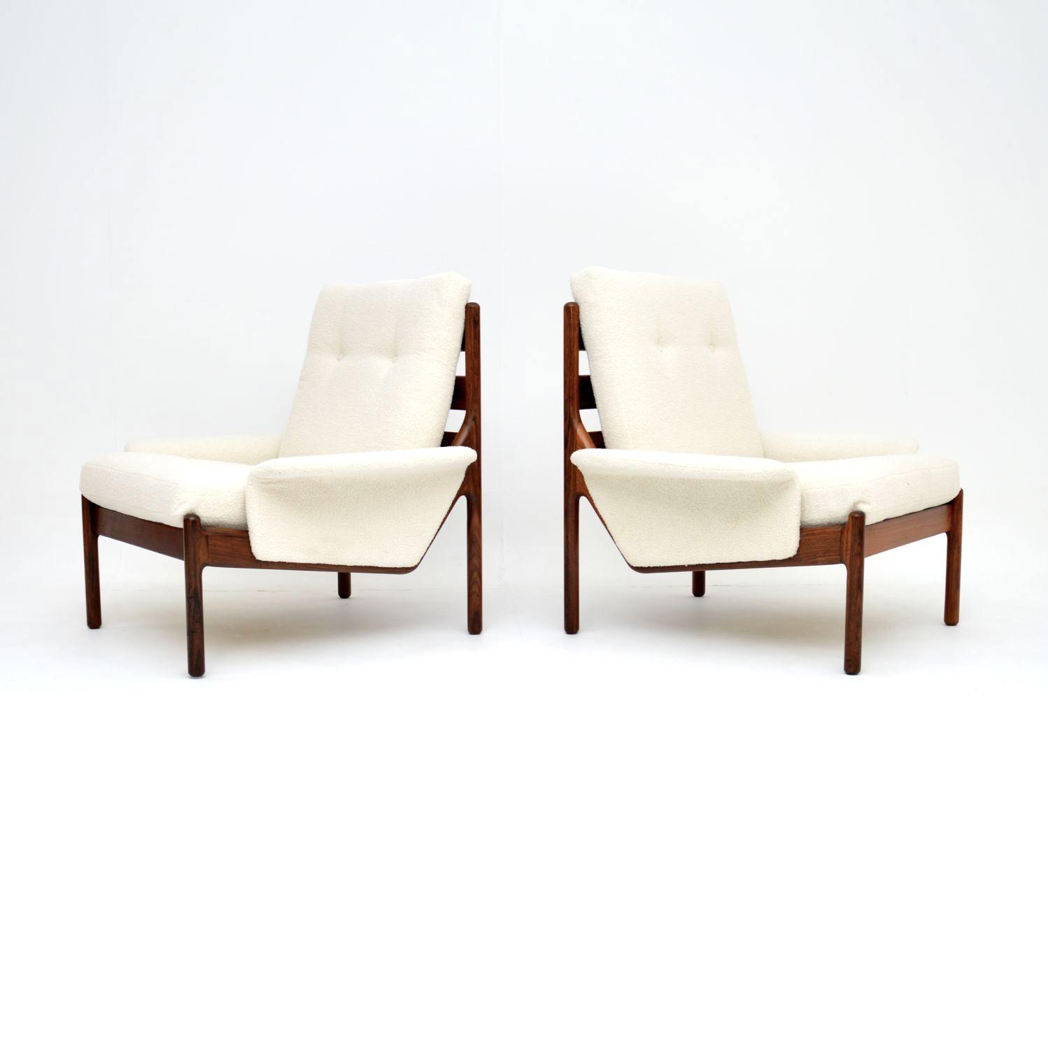 1960s Pair of Danish Rosewood Armchairs by Illum Wikkelso
