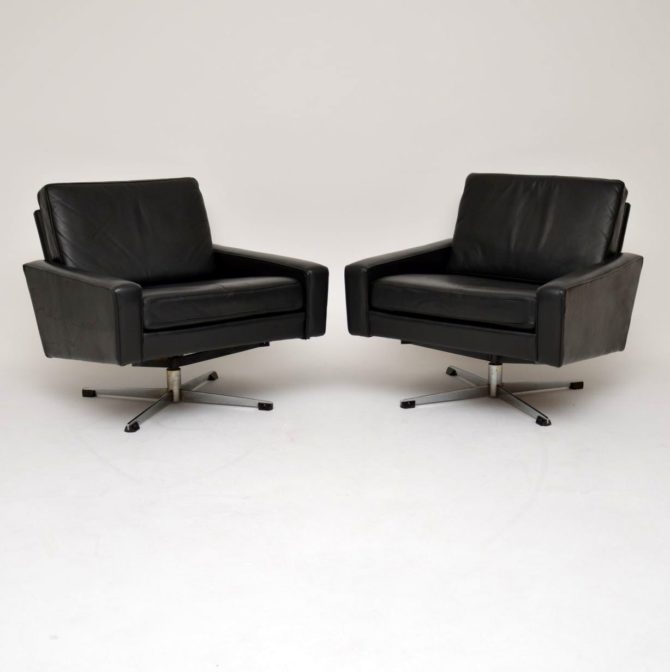 1960s Pair of Danish Vintage Leather Swivel Armchairs (1 of 1)