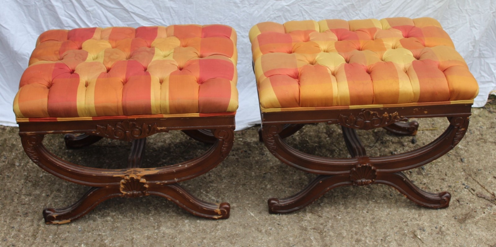 1960s Pair of Mahogany Foot Stools in Yellow & Orange
