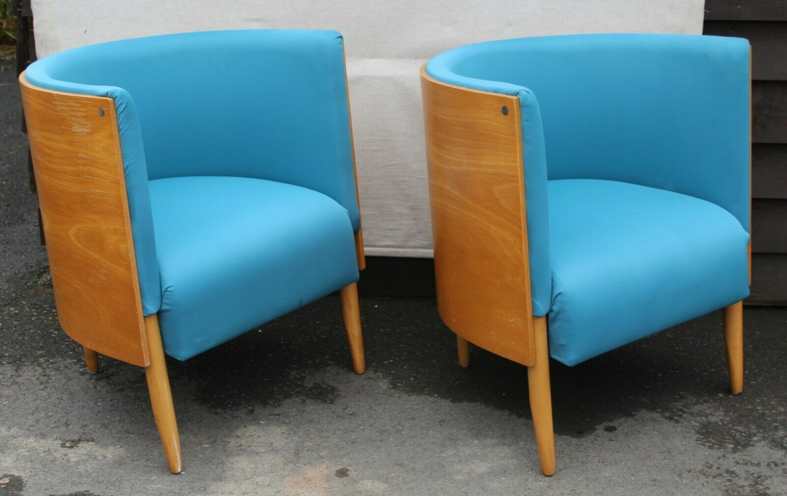 1960s Pair of Occasional Retro Stylish Bentwood Armchairs in Blue