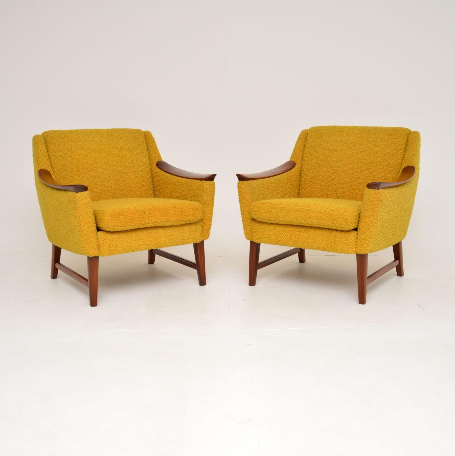 1960's Pair of Vintage Norwegian Teak & Boucle Wool Armchairs (1 of 9)