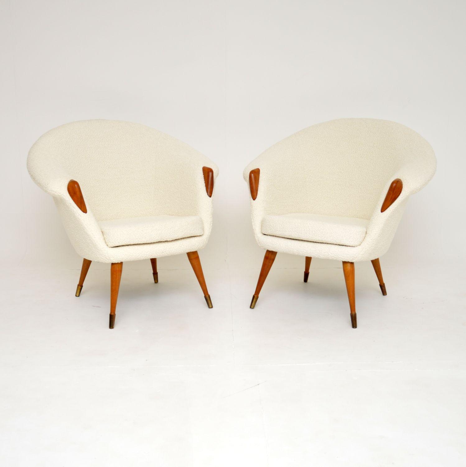 1960's Pair of Vintage Teak & Boucle Armchairs