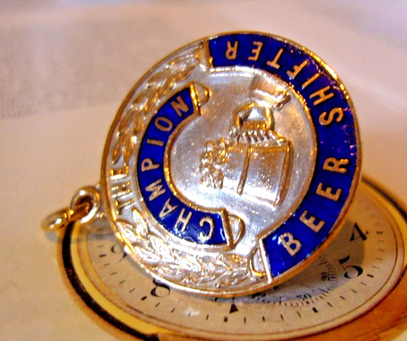 1960s Pocket Watch Chain Fob 'The Champion Beer Shifter' Gilt & Enamel Fob