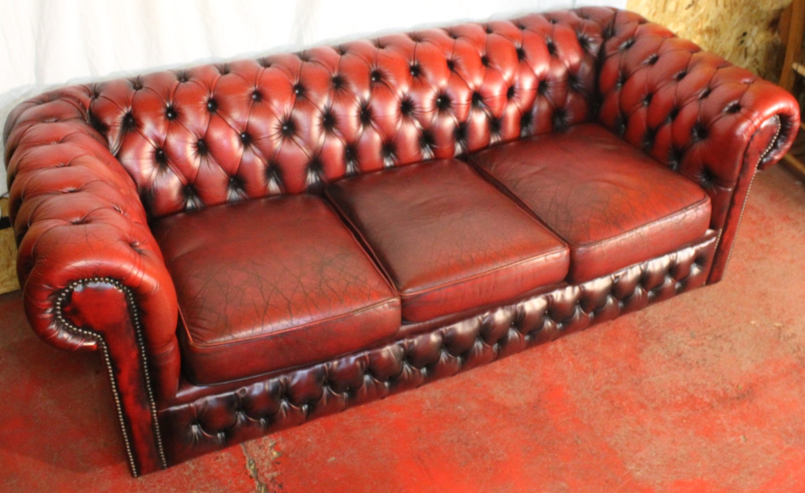 1960s Quality Red Leather Buttoned Back 3 Seater Chesterfield Sofa