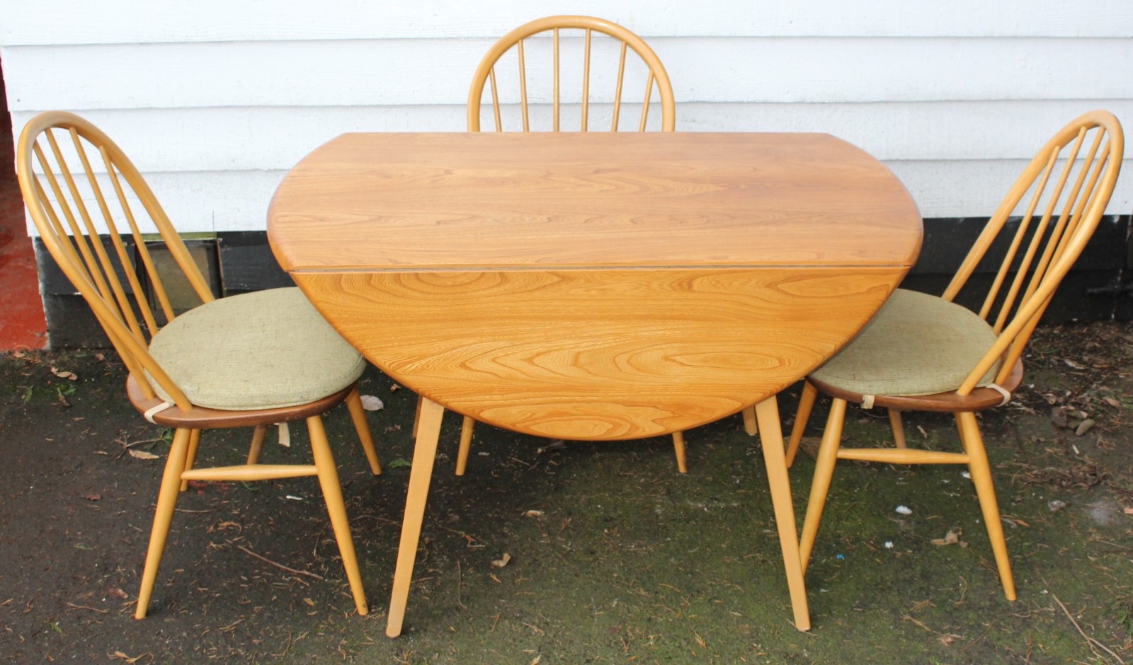 1960s Quality Retro Ercol Drop-leaf Dining Table with 3 Chairs