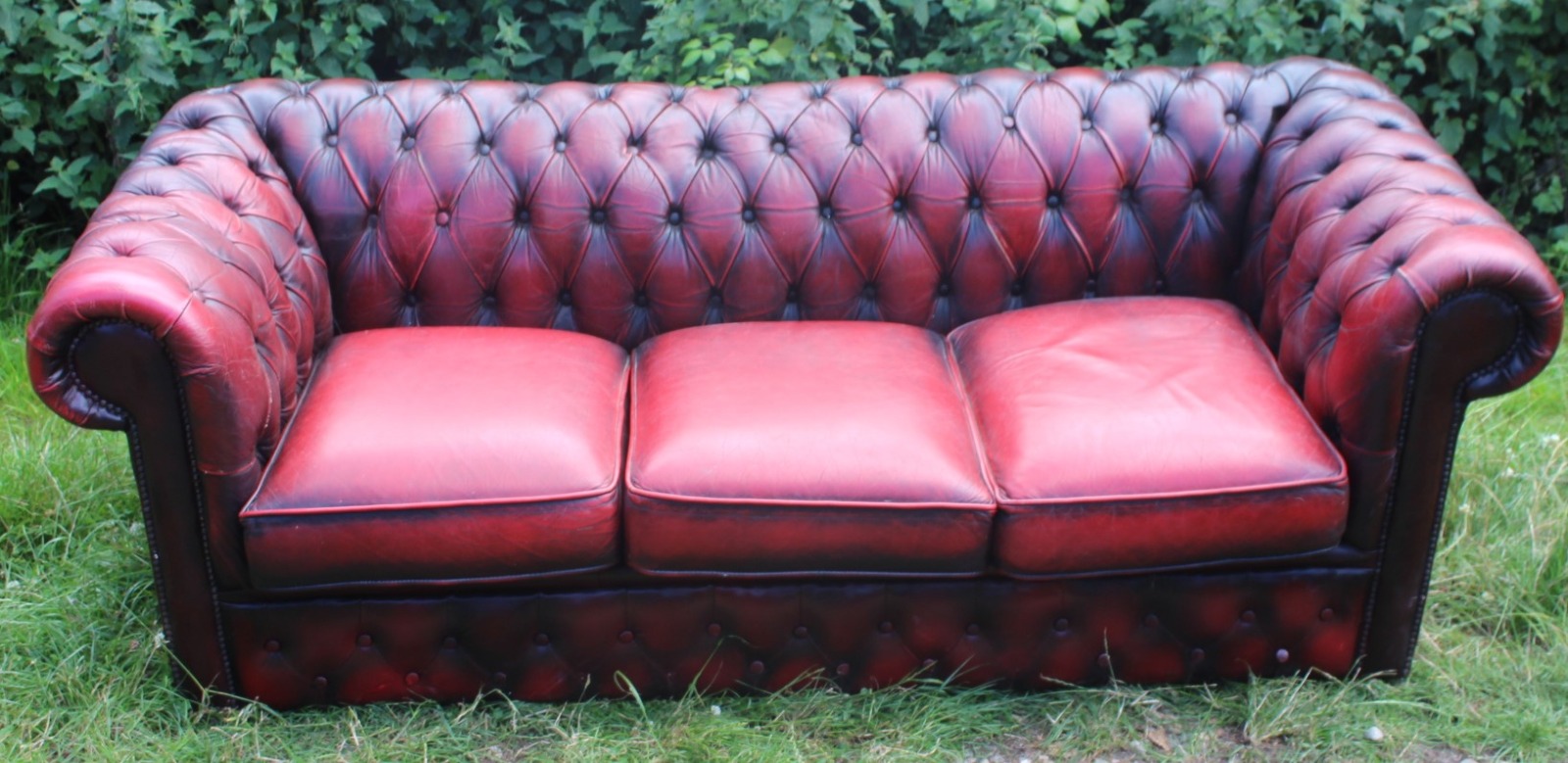 1960s Red Leather 3 Seater Chesterfield Buttonback Sofa