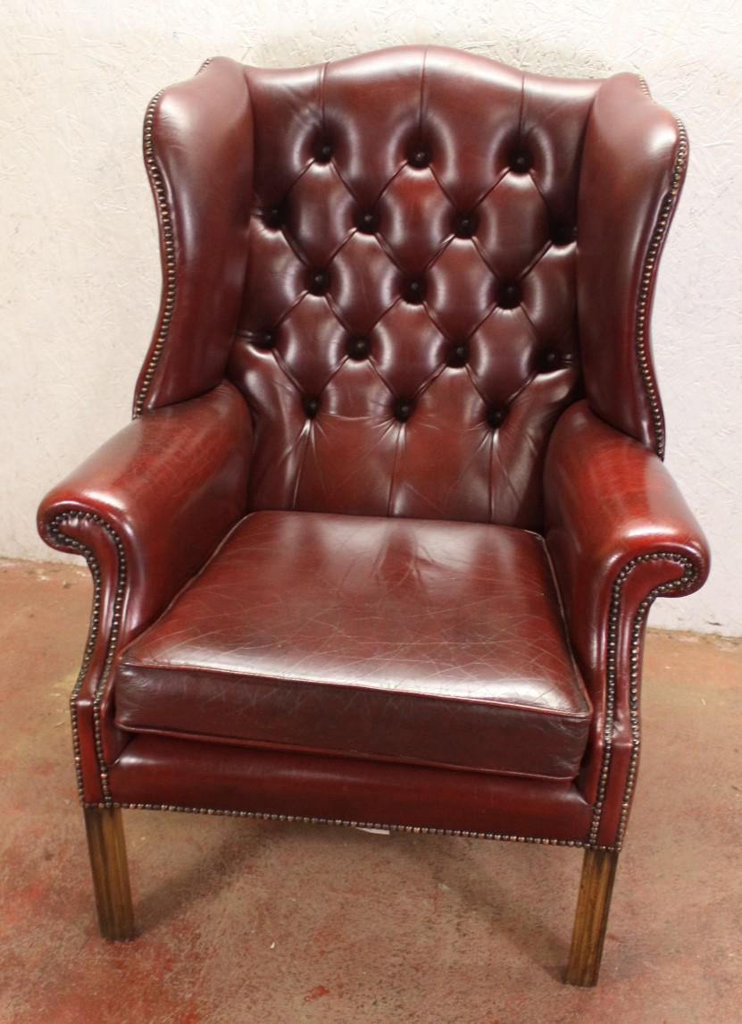 1960s Red Leather Wing-back Armchair with Buttoned Back
