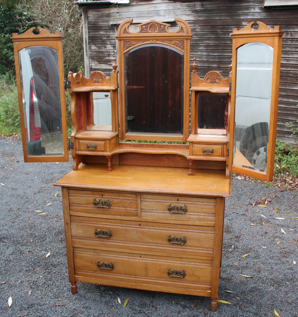 1960's Satin Walnut Dressing Table with Triple Mirrors