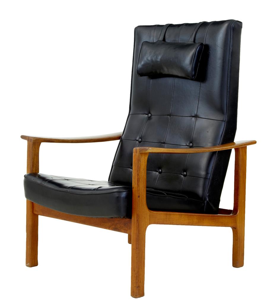 1960's Scandinavian Modern Teak Reclining Leather Armchair (1 of 6)