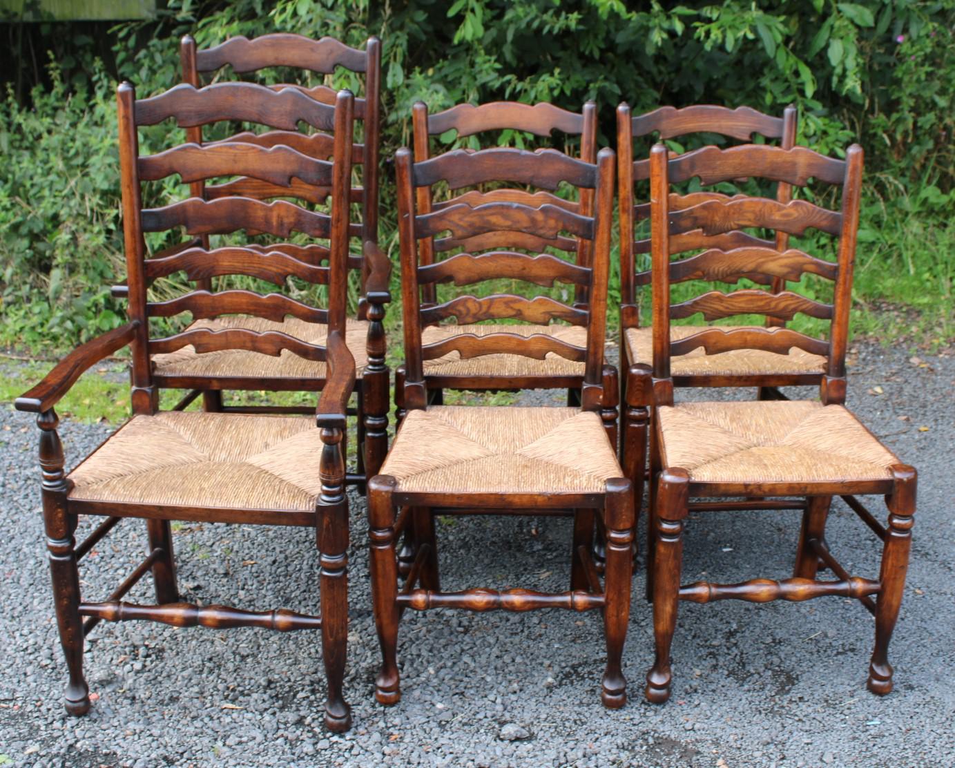 1960s Set 6 Ash Ladder Back Dining Chairs 4+2 Carvers