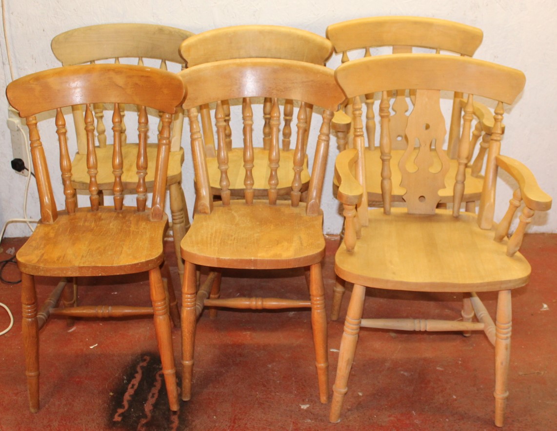 1960s Set 6 Pine Kitchen Chairs -2 X Carvers and 4 X Chairs