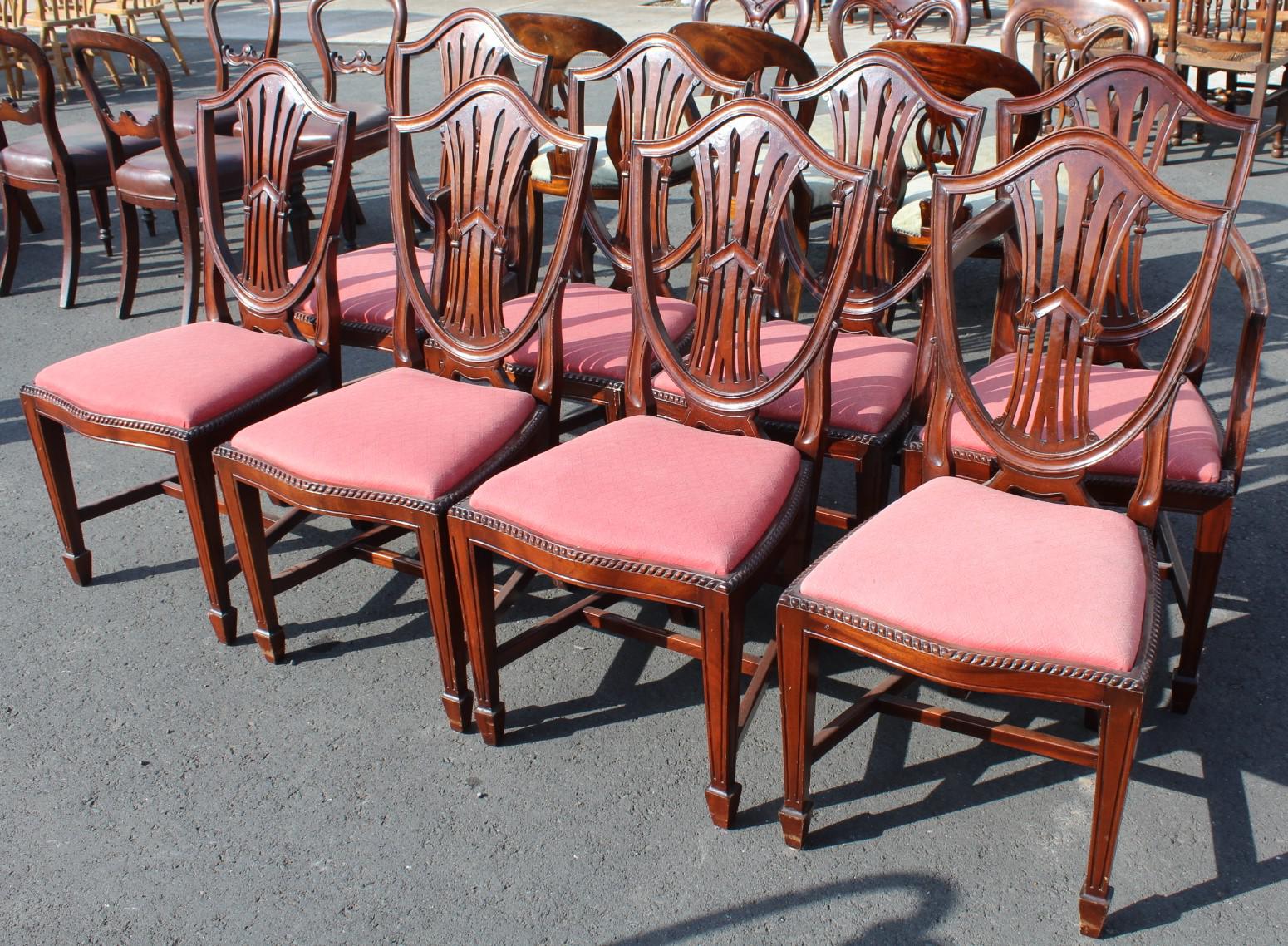 1960's Set 8 Mahogany Hepplewhite style Chairs with Pop out Seats