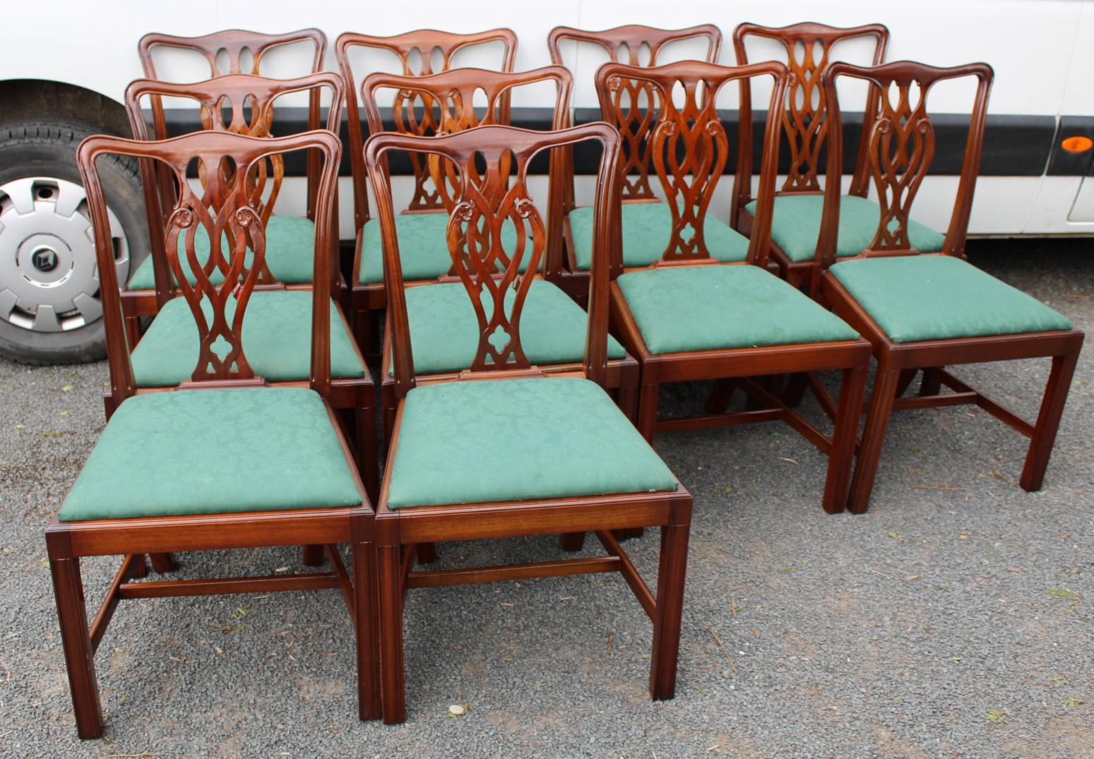 1960's Set of 10 Mahogany Georgian Style Dining Chairs with Pop Out Seats