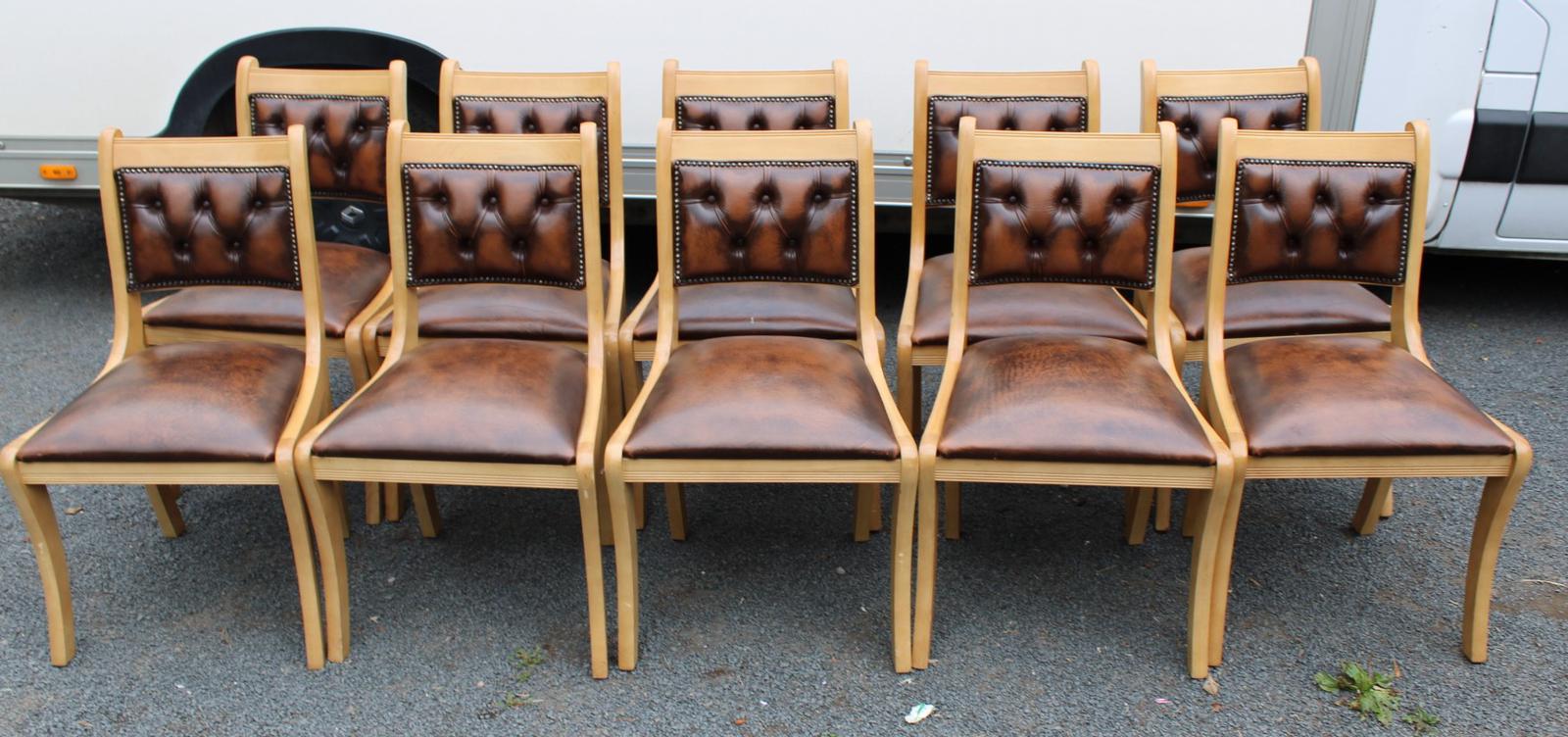1960s Set of 10 Oak Dining Chairs with Brown Leather Seats