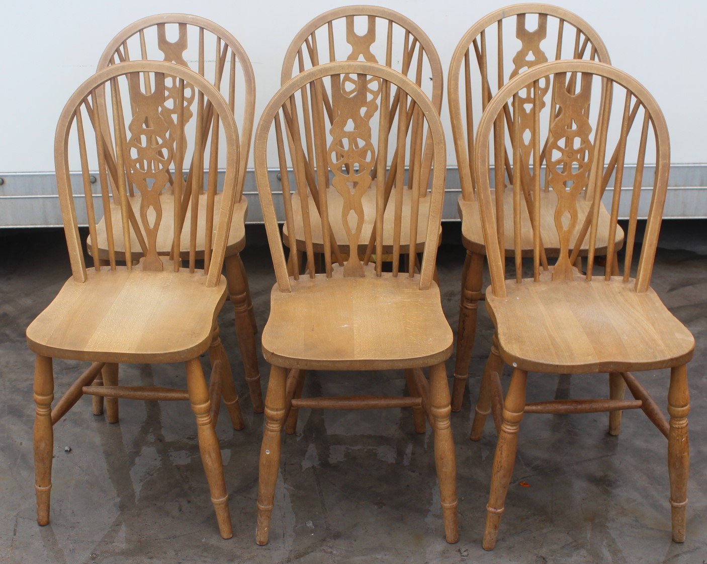 1960s Set of 6 Ash Wheel Back Country Farmhouse Chairs