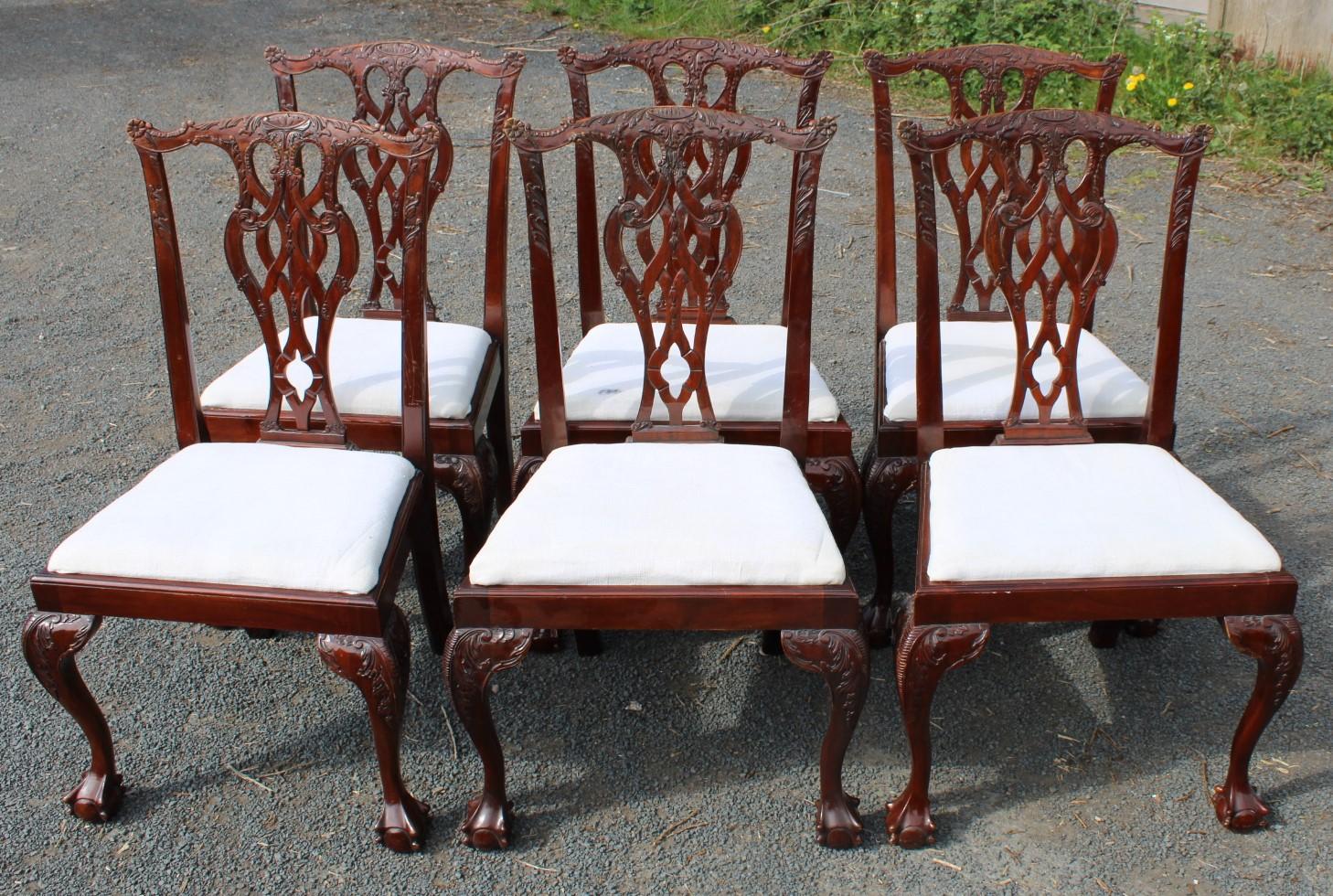 1960's Set of 6 Mahogany Chippendale Style Chairs with Pop-out Seats