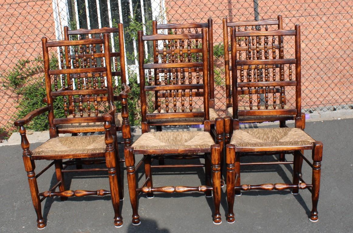 1960s Set of 6 Oak Spindleback Dining Chairs with Rush Seats