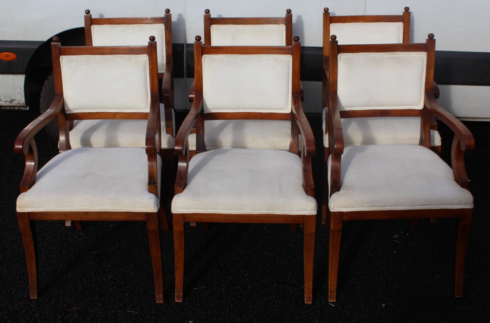 1960s Set of 6 Walnut Dining Chairs - 2 Carvers & 4 Chairs Pop-out Seats