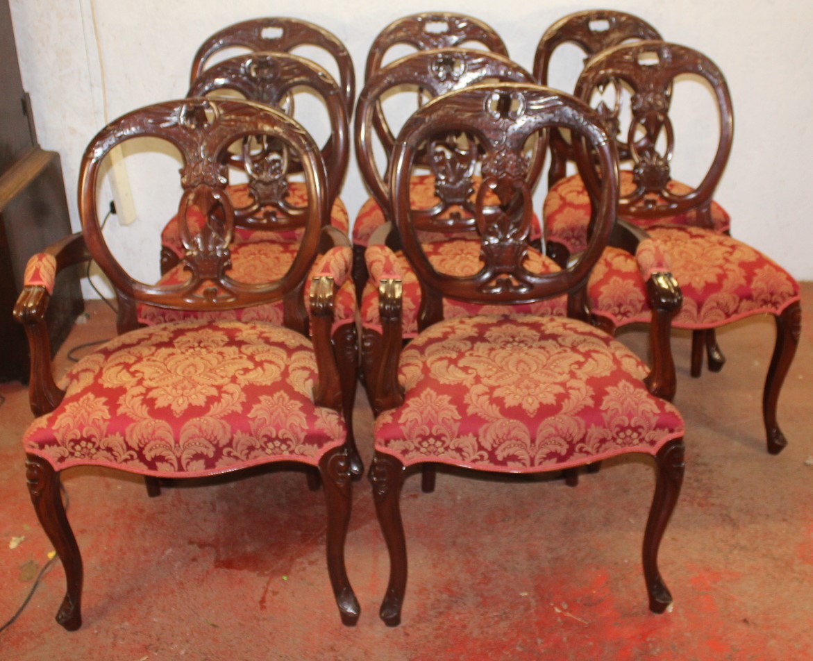 1960s Set of 8 Mahogany Ballonback Dining Chairs Red Upholstery
