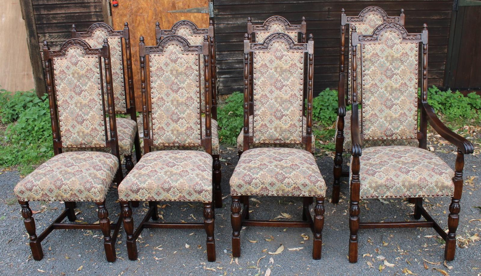 1960s Set of 8 Oak Highback Dining Chairs - 6 + 2 Carvers