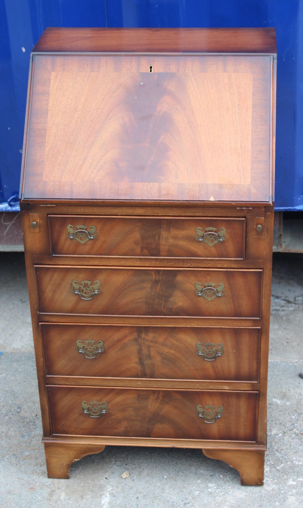 1960's Small Mahogany Ladies Bureaux with Red Leather