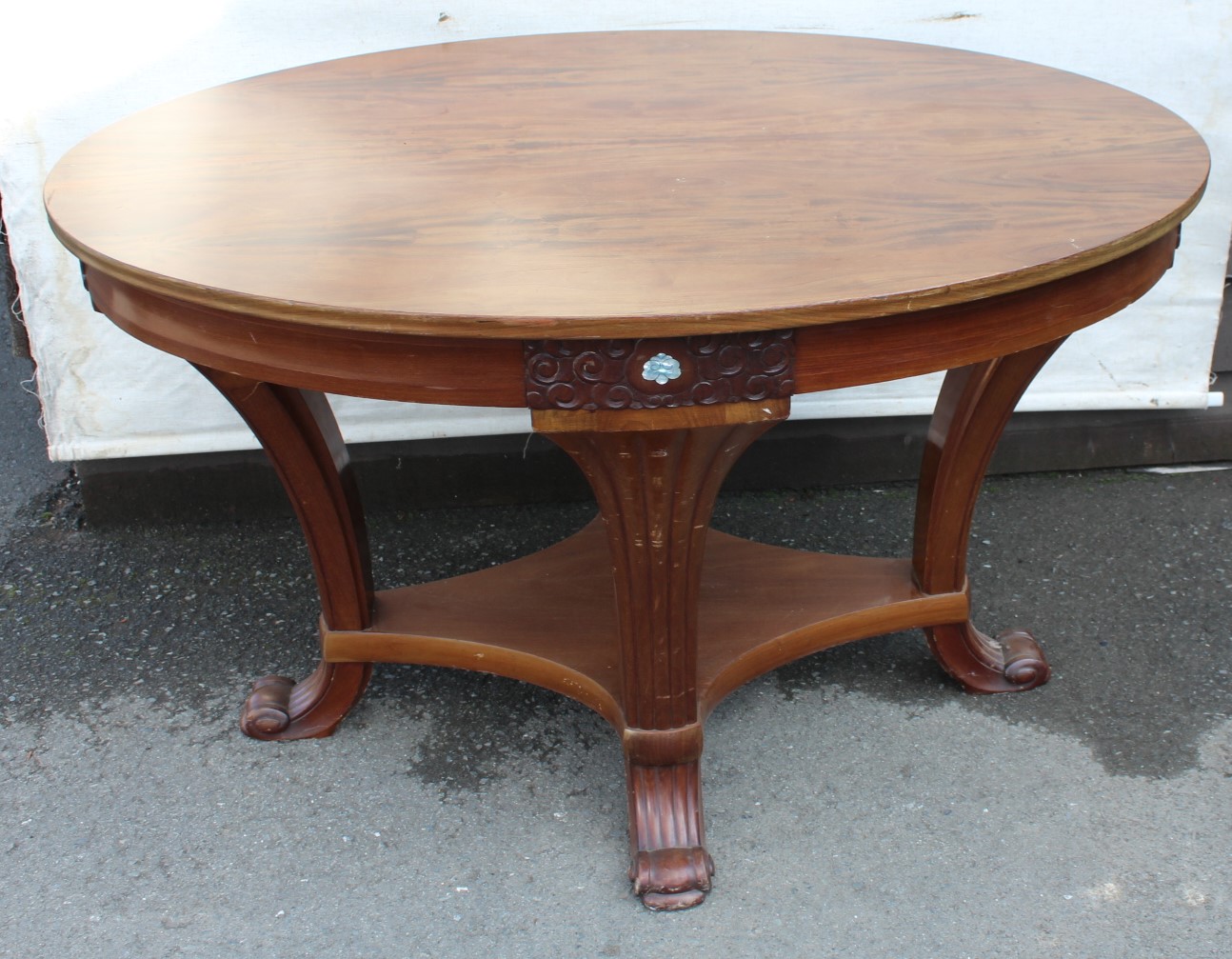1960s Solid Mahogany Oval Table with Mother of Pearl Motif