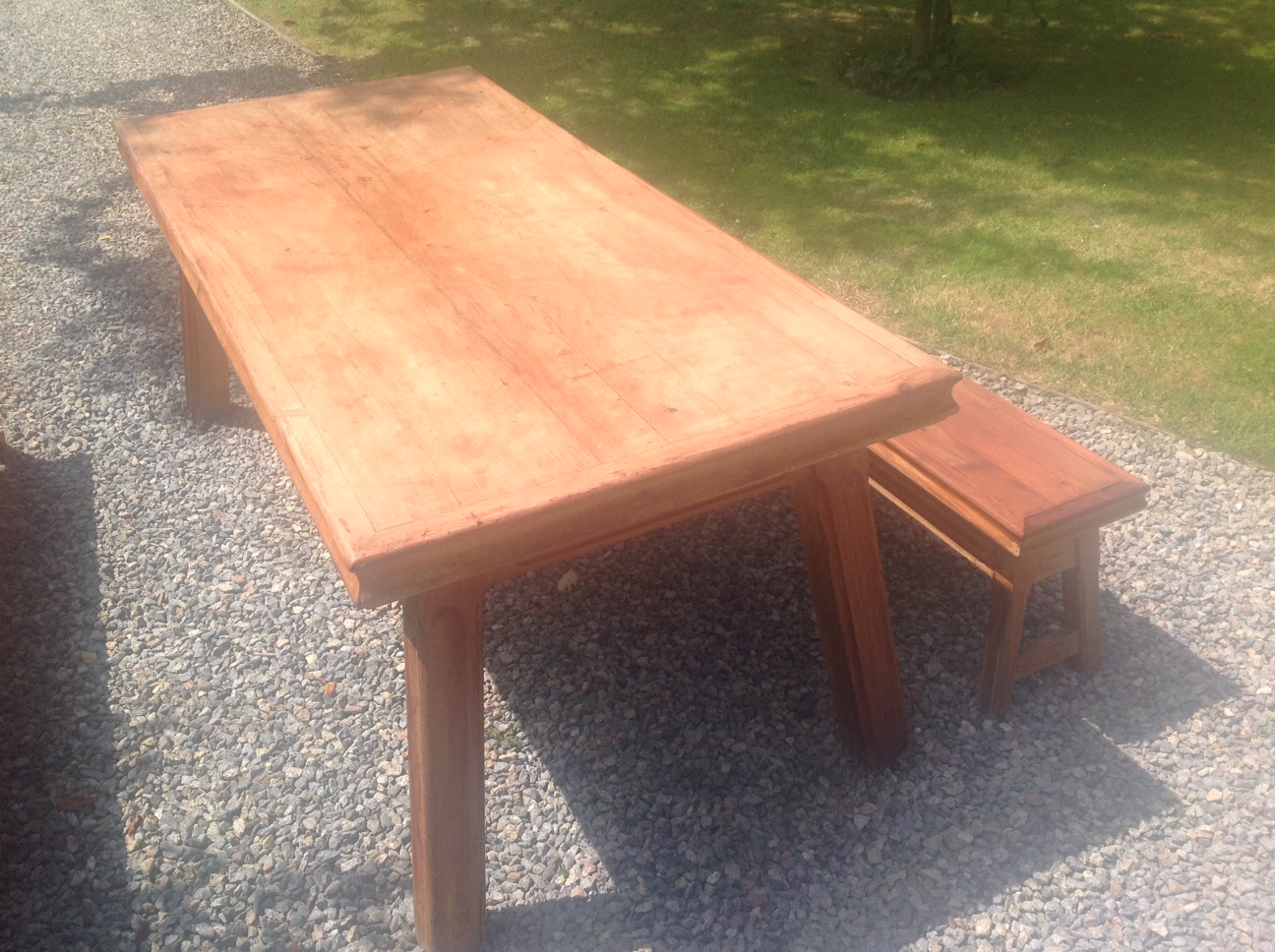 1960s Solid Scrub Topped Pine Kitchen Farmhouse Table and with Two Long Matching Benches , 7' Long