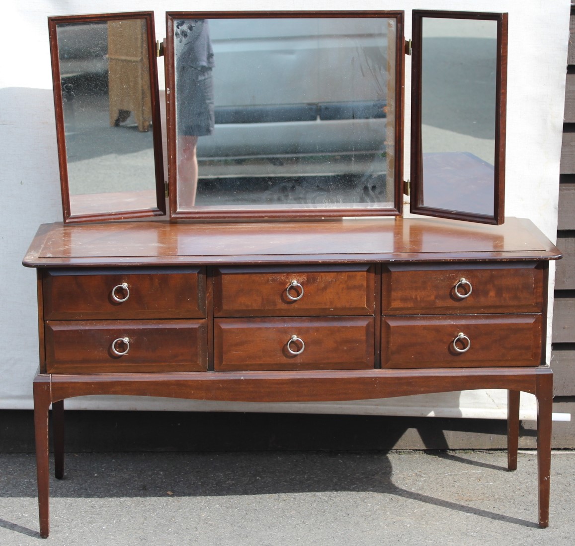 1960s Stag Mahogany Dressing Table with Triple Mirror