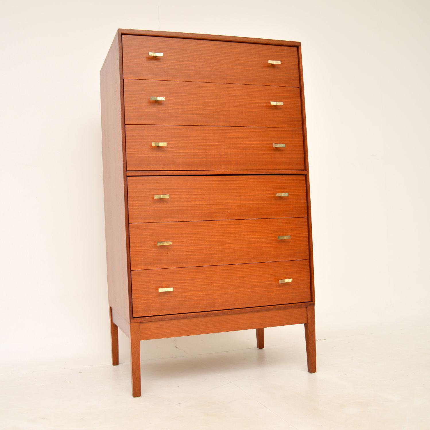 1960's Teak & Brass Tallboy Chest of Drawers