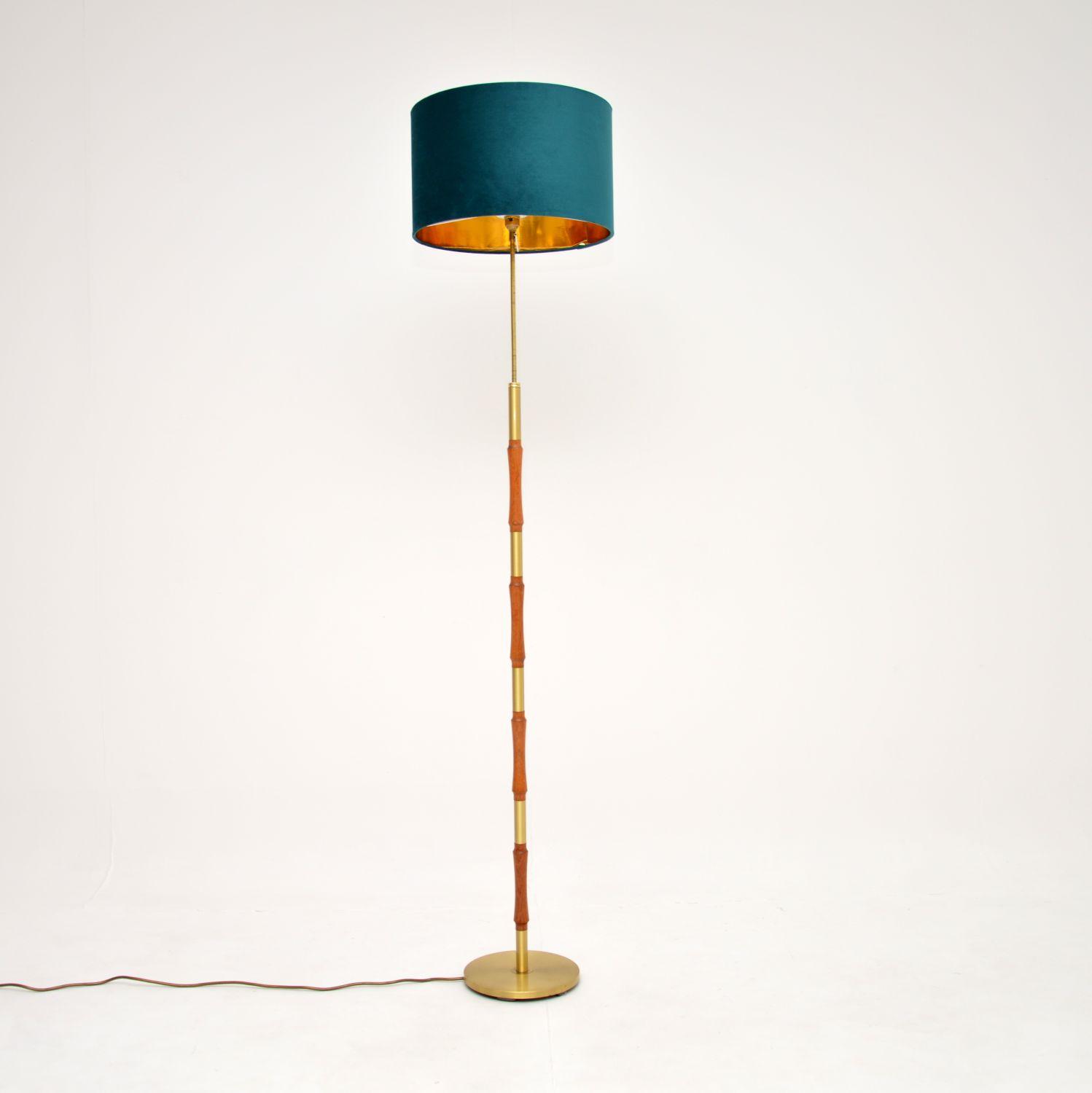 1960s Vintage Teak & Brass Adjustable Floor Lamp