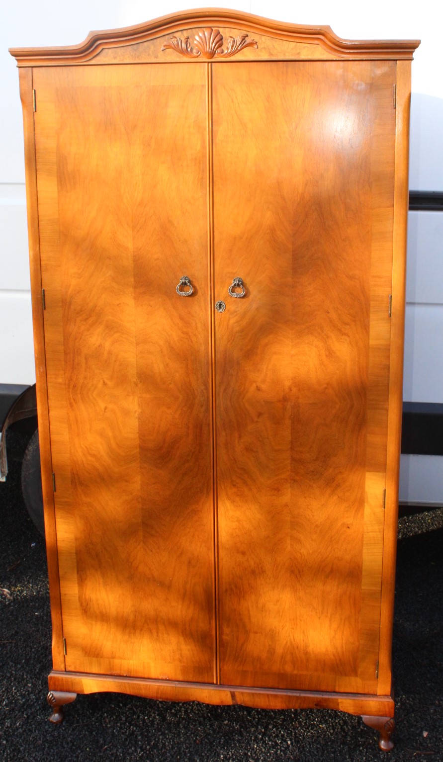 1960s Walnut 2 Door Carved Top Wardrobe Nice Interior