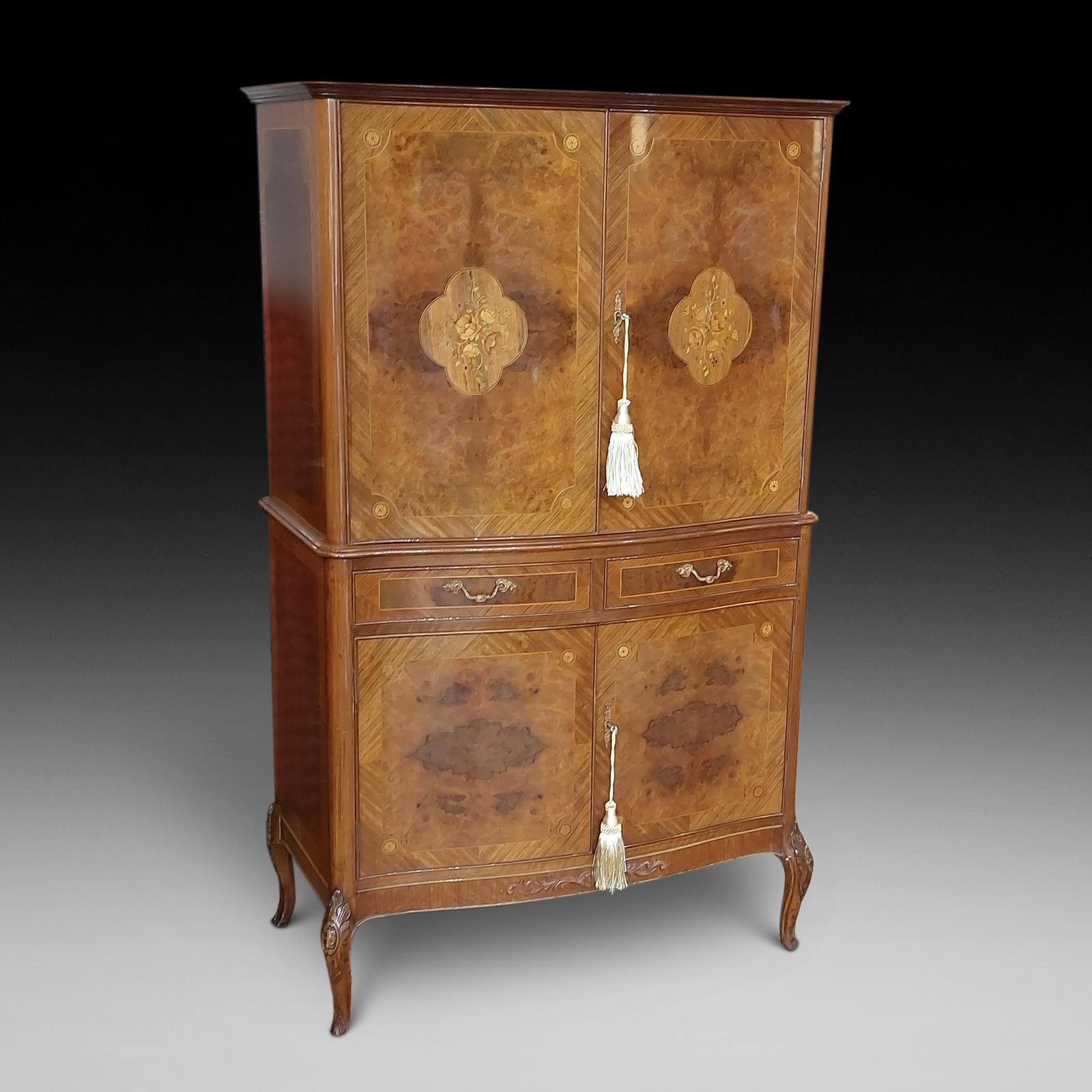 1960s Walnut & Marquetry Inlaid Cocktail Drinks Cabinet (1 of 15)