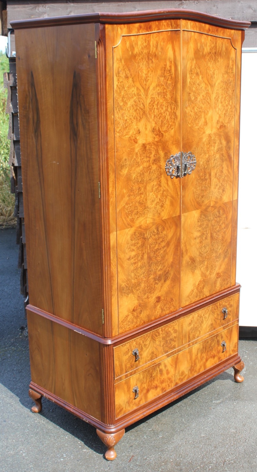 1960s Walnut Press Wardrobe Well Fitted Drawers at Base
