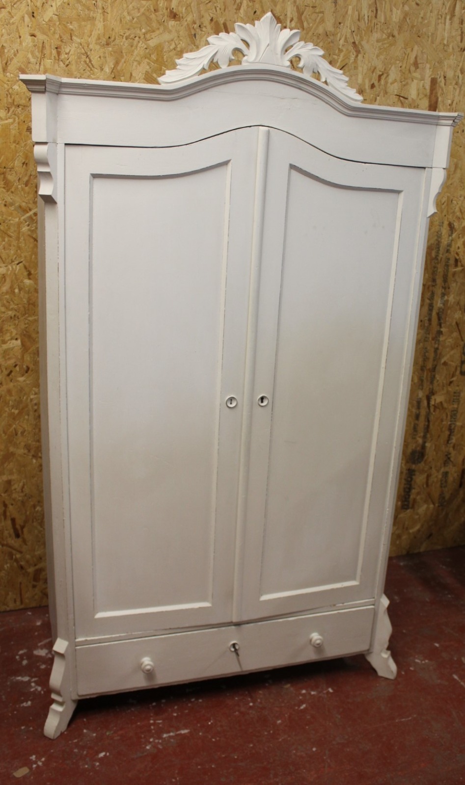 1960s White 2 Door Louis XV Style Wardrobe with Base Drawer