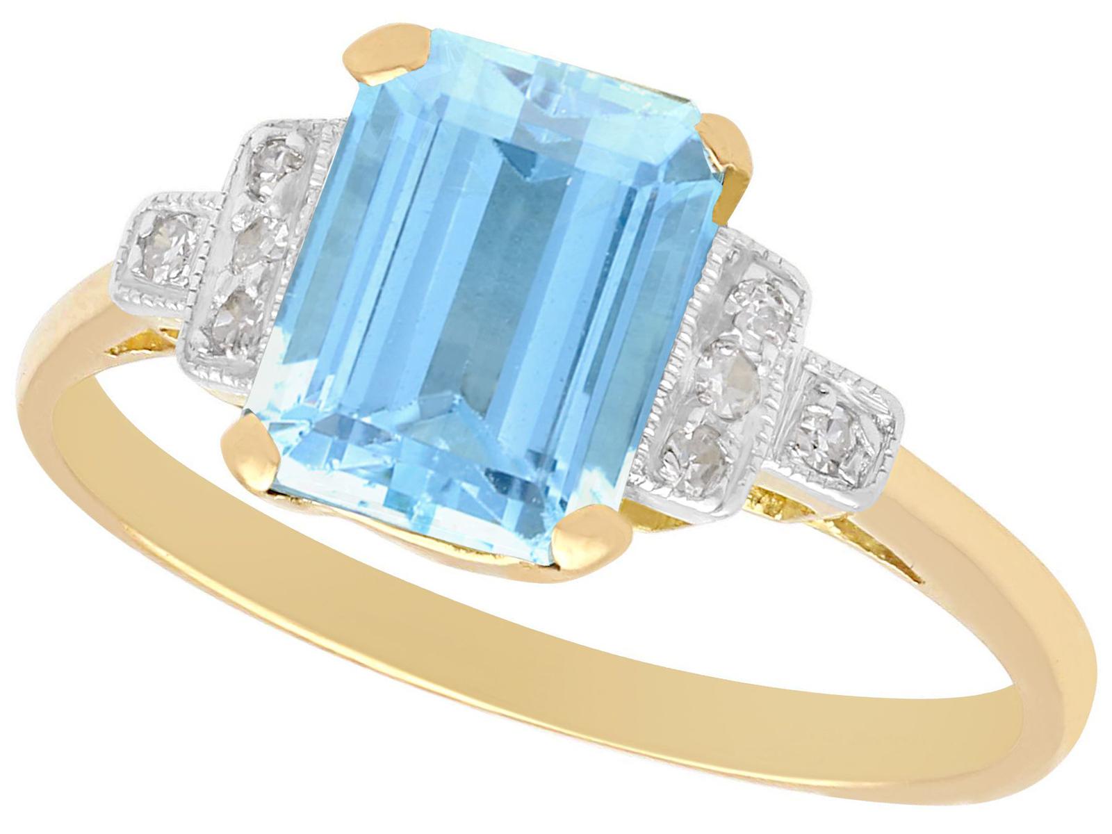 1.96ct Aquamarine and Diamond, 18ct Yellow Gold Dress Ring - Antique Circa 1920